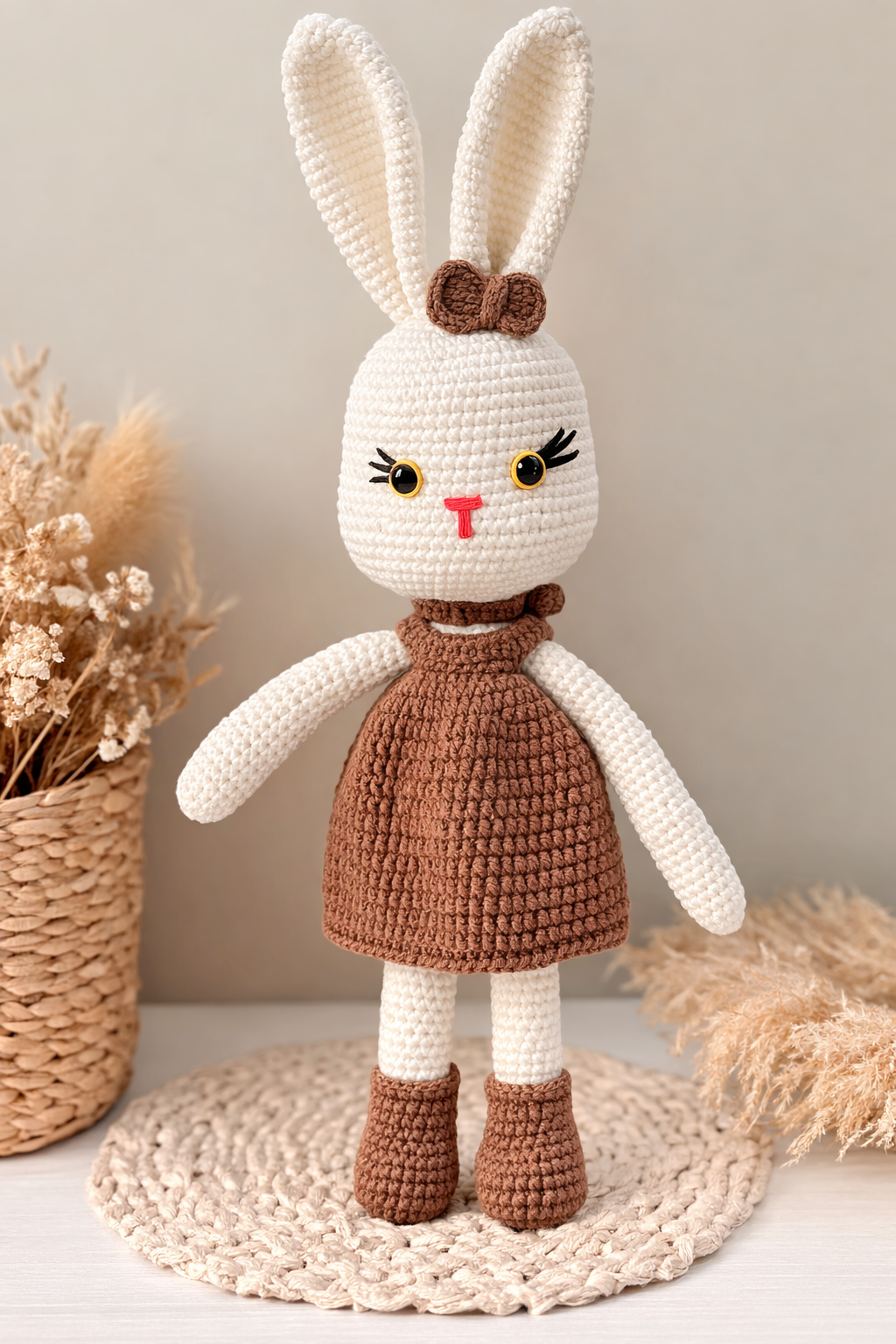 Sevimli tasarımı ve tamamen el emeği ile hazırlanan amigurumi tavşan oyuncak, çocuklar ve bebekler için hem güvenli hem de dekoratif bir oyuncaktır. Yumuşak dokusu sayesinde bebeğinizin uyku arkadaşı olmaya adaydır.